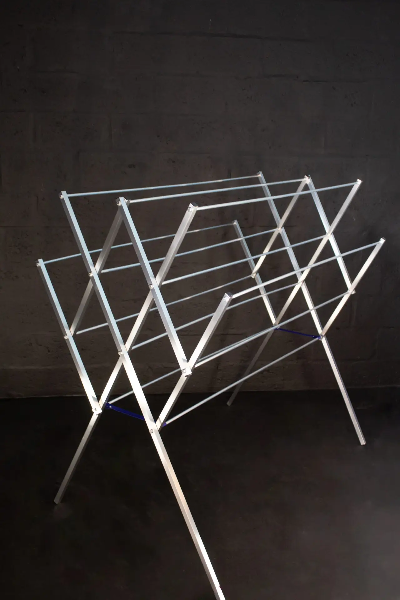 It is designed for Cape weather conditions so it is made from rust free material and is very sturdy when the feet are opened 90cm wide. The two sides are made of square tube aluminium forming the stand with round tube aluminium bars forming the hanging space.Â