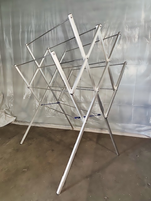 It is designed for Cape weather conditions so it is made from rust free material and is very sturdy when the feet are opened 90cm wide. The two sides are made of square tube aluminium forming the stand with round tube aluminium bars forming the hanging space.